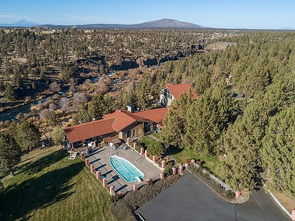 Deschutes River Estate with an estimated 3/8 mile of private, unobstructed river frontage and located at the end of a secluded private paved road. This is an once in a lifetime property with 20 private acres, 10 irrigated acres, mature landscaping that has been beautifully maintained as a park like setting, 2 ponds, barn, separated fenced lower pasture, the property is fenced with gated entrance. The single level home with 5 bedrooms, includes large open living space, separate flex space above the garage, four car garage, swimming pool and covered deck overlooking the Deschutes River. Easy access to the raging river and calm eddies. Opportunity to own a property on the Deschutes River minutes from Tumalo and short drive to Bend.