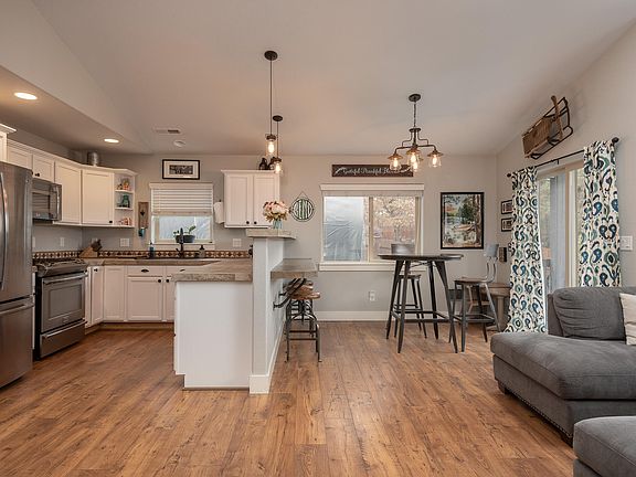 This adorable single level home in NE Bend will not disappoint. Quality construction throughout, featuring an open greatroom with vaulted ceilings and a gas fireplace, lovely kitchen with stainless steel appliances, bar seating and dining area, a spacious master with a dual vanity and walk in closet, attached two car garage, R.V. or boat parking, A.C., private backyard with an elevated deck, and a welcoming covered front porch, all make this a great place to call home!