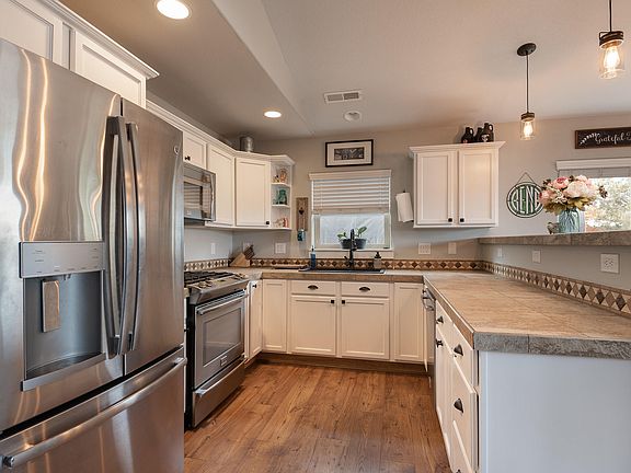 - Interior Features: Master Downstairs, Tile Counters, Double Vanity, Linen Closet, Walk-In Closet(s), Ceiling Fan(s), Vaulted Ceiling(s), Open Floorplan