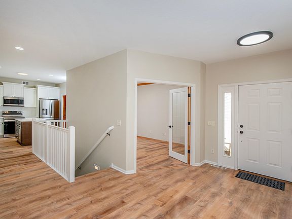 Welcome Home! Radon mitigation system installed in May 2025. New, New, New! This home has been renovated from top to bottom. New floor, carpet, paint throughout and a fully renovated kitchen with new appliances! The furnace is new, roofs were done in 2023 and brand new concrete patio out back. This home has it all. Lower level has a "flex" room that can be used as a home office, gym, or the ultimate movie theater room, or just a simple storage room. The upper level "flex" room was used as a bedroom, but can also be the perfect quiet office, or a sitting room for entertaining guests. This home is huge, open, spacious, and cozy all at the same time. Curl up by the fireplace on a cold MN morning, or enjoy basking in the sun on the private deck out back. Moments from trails, parks, restaurants, downtown Lakeville and more. Move in and get ready because you will not want to miss being part of the Lakeville community and Pan-o-prog coming up this summer- a TRUE Lakeville staple. Come check this beauty out! *Taxes will be much lower once home-steaded*