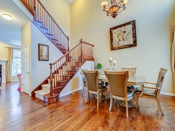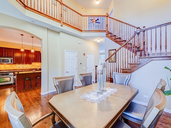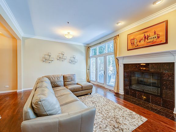 Enjoy luxury and maintenance free living in this sophisticated 2250s.f. beautiful townhome with finished full basement located just steps from Deer Park Mall! This home has 4 spacious bedrooms (3 on second floor + 1 in the basement) with terrific closet space and 3.5 baths. Open floor plan boasts hardwood floors throughout. Neutral decor and volume ceilings. The kitchen features 42" cherry cabinetry, granite counters, ss appliances, breakfast island, and spacious eating area. First floor open layout features main living area with impressive gas fireplace and lots of natural light. Primary suite with double door entry, vaulted ceilings, dream walk-in finished closet, lavish jacuzzi bath, dual vanity with linen closet, separate shower and tub, and cherry and solid surface vanity. Second floor laundry with full-size washer & dryer plus shelves. Bedroom 2 has vaulted ceilings and spacious beautifully finished walk-in closet. Bedroom 3 offers generous built-in wooden shelves closet space. Finished basement with 900 sq.ft. living space has a full bath, full kitchen, bedroom with natural light, second family room, and lots of space for storage. Great as in-law quarters or redesigned as additional living space. The main living area in the basement is fully pre-wired and is set up as a movie theater (projector and surround sound included). The entire home has HDMI/CAT5/AV wiring inside the walls. This home also has an electrically heated roof to reduce heating bills in the winter. Newer furnace and top of the line carrier A/C unit. Two-car heated garage with Epoxy flooring completes this townhome close to train, 53, forest preserves, etc. A+ rated schools. Walk to shops, restaurants, theaters, and parks! Chandelier in bedroom 2 is excluded and will be replaced with similar lighting fixture.