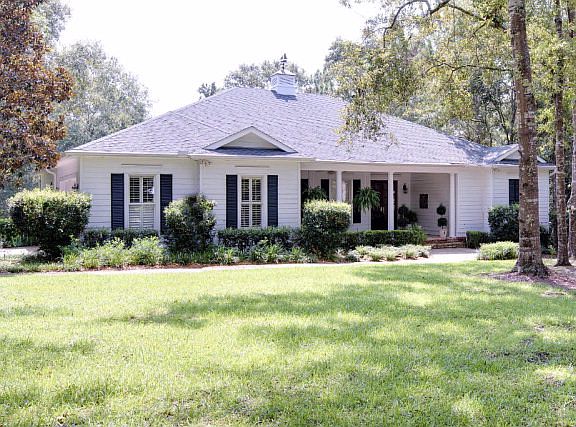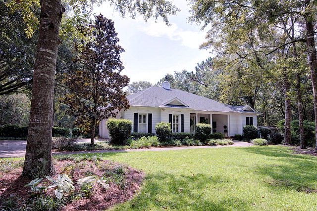 A Fairhope Oasis! 2 acres with a path leading to upper Fish River. Drop your kayak or canoe in the river or just jump in and cool off! Partially wooded lot with fruit trees and gorgeous oaks. Landscaped yard with sprinkler system. Energy efficient home custom built by Pat Achee features Andersen windows and doors, granite counters, tile and hardwood flooring. Open living/dining/kitchen area with split bedroom plan. Enjoy the private wooded area from the sunroom. Step out onto the 10x26 screened porch or the 12x26 deck overlooking the inviting heated pool and hot tub or relax in the front porch swing. Home has oversized garage and whole house gutters.