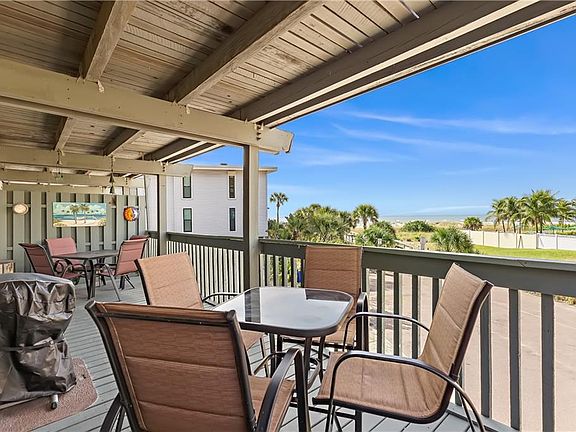NO MINIMUM RENTAL PERIOD. SHORT TERM RENTALS ALLOWED & INCOME PRODUCING VACATION RENTAL. Gulf-front Treasure Island, 2BR, 2BA condo is light & bright and known as "LETS BEACH". The Sand Dunes is steps to the gorgeous wide beach at 120th Ave W. This is not your typical shotgun, narrow condo with a tiny balcony. The floor plan is open and roomy with a 27 foot covered outdoor balcony with views of the beach & Gulf. This condo is 1 of 4 in this building of this small complex of 14. You truly feel like you are in a little beach house on stilts. LETS Beach has been totally remodeled including most recent-brand new kitchen, quartz counters & stainless appliances. All Italian 18 inch tile over the concrete board, both bathrooms, & to use accordion storm shutters. The last several years include new HVAC, water heater, new energy-efficient windows & sliders, and the balcony/porch decking was redone with marine-grade boards & stainless screws. You have direct views of the Gulf & the beach from inside the condo. Built on stilts, you have your own covered parking underneath for up to 3 cars & also comes with a large private storage closet for your beach toys & bikes. You are a short walk down the boardwalk onto the beautiful sugar like sand where it's front row for the fireworks & sunsets! Everything you need is nearby. There is no minimum rental period for this unit and provides great rental income. This is a great investment property as well as a second home.