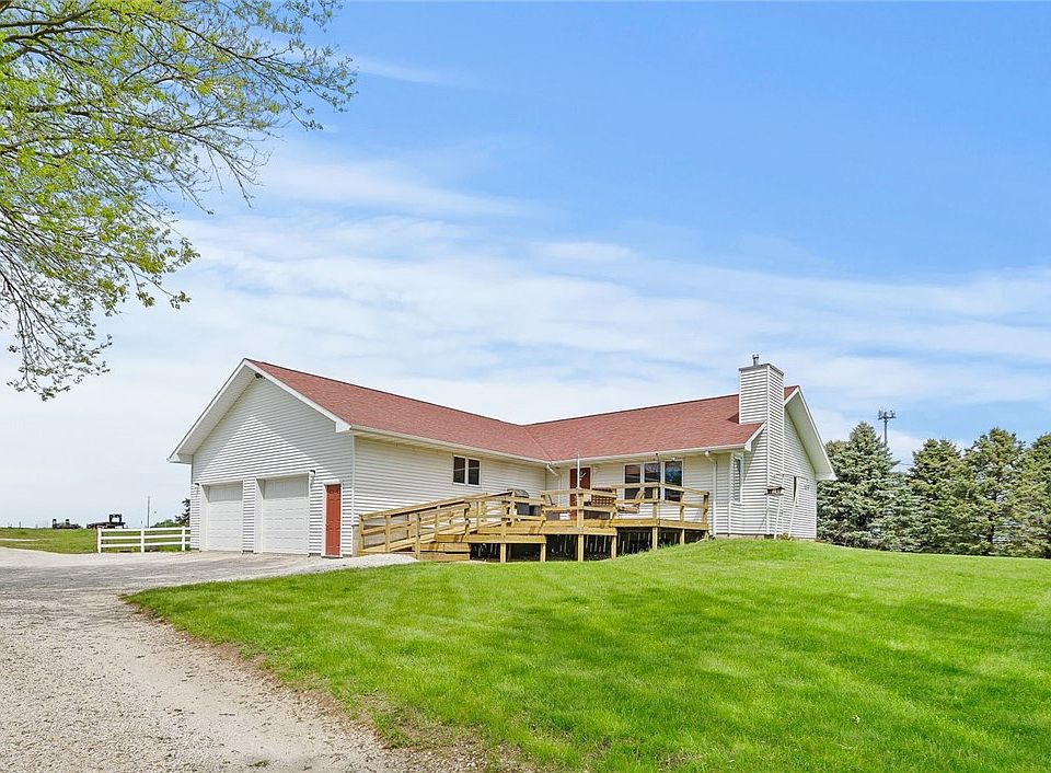 Welcome to your future home in Northern Guthrie County! Don't miss out on this wonderful opportunity with nearly 11 acres and multiple buildings conveniently located on pavement just north of Hwy 141 on the outskirts of Jamaica. This remarkable home has 1700 sf on the main level with a full kitchen, dining area, living room & fireplace, and three bedrooms. Adjacent to the kitchen, you'll find a convenient laundry area and mud room which leads you to the garage with plenty of space for all your storage needs. The vast lower level is truly impressive featuring a built-in wet bar, a family room with a 2nd fireplace, a fourth bedroom, and a bathroom. Outside the home, there is a large yard, a spacious deck, and a beautiful garden offering ample space for leisure and enjoying the amazing country views! Completing the property are 3 buildings including a storage building, a large heated shop (including a vehicle lift), and a barn that is "livestock ready" and set up with adjacent pens and pasture. With a prime location in Northern Guthrie County and only 40 minutes from the Des Moines Metro, don't delay in viewing this one-of-a-kind property before it's gone!