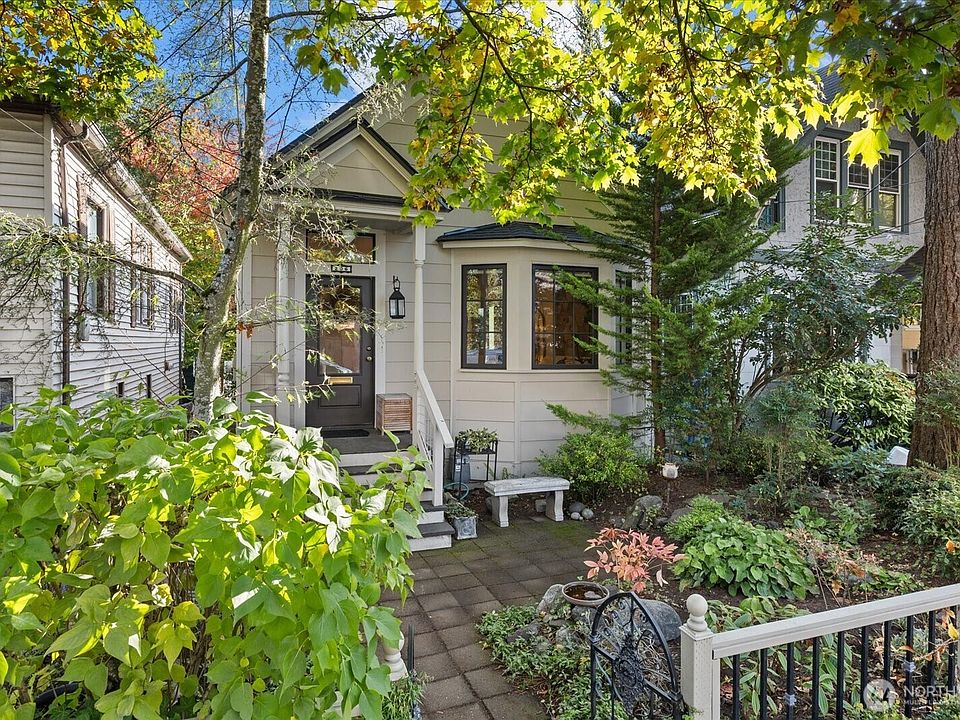 Light-filled Central District vintage home where timeless architecture meets Kinfolk-inspired modern design. 2 BD+Den/ 1.75 BA, lofty 10’ ceilings, archways, Ralph Lauren paint, windows wrapped in white oak, European oak wide-plank floors. Living room w/ bay window flows into formal dining room and onto French-inspired modern kitchen. Main level built-in loft bedroom, den/library with custom shelving- ideal office /3rd BD. Upstairs spacious primary suite with lounge, office nook & sleeping cove w/ skylights. Glass sunroom looks out to lush, private oasis of mature plantings & patio designed for alfresco dining, evening fires. New roof, gas furnace, ductless A/C, instant water heater. Prime location close to shops, eateries & light rail.