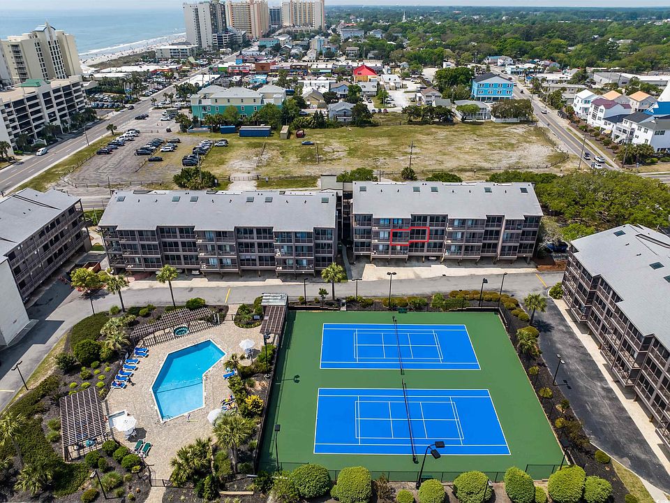 ***HUGE PRICE REDUCTION with BIG UPGRADES*** NEW HVAC Kitchen and ALL Baths have been upgraded!! Tilghman Beach & Racquet is a truly exceptional property in the Cherry Grove section of North Myrtle Beach! Its second-row location provides a unique blend of proximity to the ocean while still offering peace and quiet. The balcony views, overlooking the newly re-surfaced sports courts, and resort style pool create a serene atmosphere perfect for relaxation. The convenience of being within walking distance to dining, shopping, and public beach access adds to the appeal of this property. Residents can easily enjoy the sun, sand, and ocean whenever they desire, while also having the option to explore the vibrant entertainment scene on Main Street. The proximity to Barefoot Landing further enhances the convenience, offering a variety of shopping, dining, and entertainment options just minutes away. And for golf enthusiasts, the area's world-class golf courses make it a golfer's paradise. If one pool isn't enough for you, enjoy a second ocean front pool along with private beach access. This condo offers a unique opportunity for those looking for a beautiful getaway in Cherry Grove. It's a place where residents and visitors alike can enjoy the best that North Myrtle Beach has to offer.