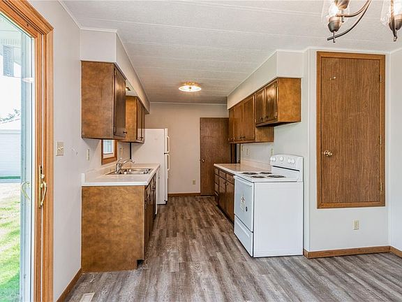 Adorable remodel on this energy efficient ranch in Keystone Vinyl siding, updated windows, metal roof, all new flooring, fresh paint throughout Spacious living room with great southern facing picture window & new paint & carpet Kitchen/dining combo with a slider to the deck & yard. Pantry closet in the kitchen & another storage closet. Enjoy a brand-new stove & dishwasher in the kitchen along with a newer fridge. Bathroom is a great size with a double vanity & brand-new shower/tub combo. 3 bedrooms, all with new carpet & lighting & ample closet space Oversized 1 car attached garage, full basement with a 1/2 bath, newer water heater & new sump pump with a battery back-up. Also enjoy all new faucets, lighting, luxury vinyl plank flooring, ceiling fans, furnace just 1 1/2 years old too Just blocks from the elementary school & city park and just up the street from the businesses on Main Street Set up your showing today