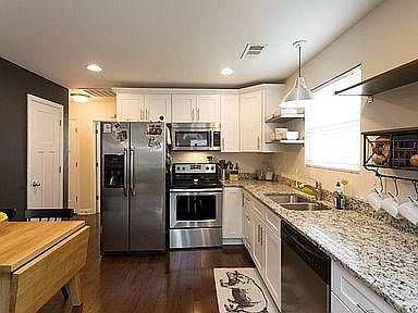 NO HOA! 3 BR, 2 BA, Built 2015, Upgraded Finishes, Granite Countertops, Stainless Steel Appliances-Refrigerator Stays. Hardwood & Carpet Floors, Tiled Wet Areas, .Privacy Fenced Backyard. Storage Building Stays. Walk to the Lake, Sams at the Marina, Schools, Dining/Shopping!
