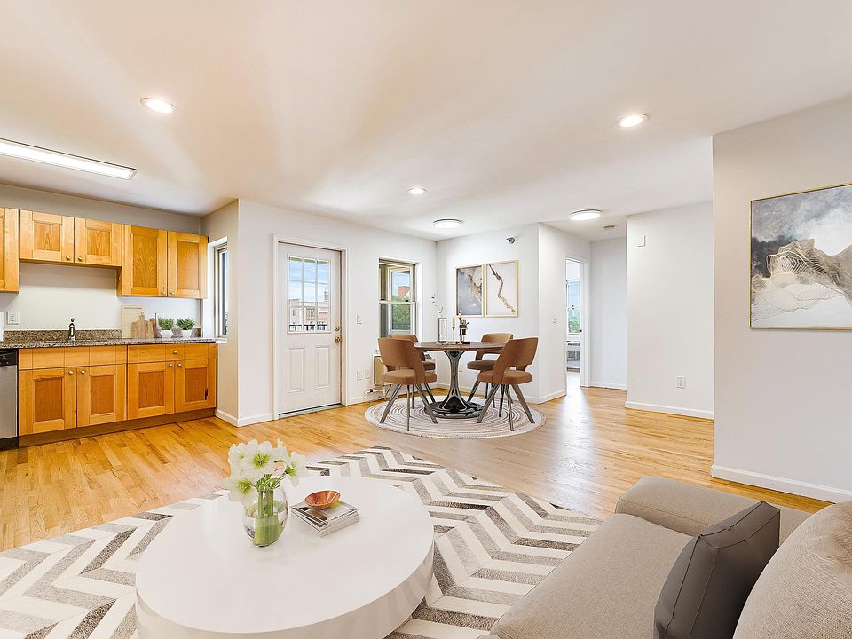 Come check out this gorgeous 2 bedroom/ 1 bathroom condo in a unique boutique building in the heart of Union City. This bright open concept corner unit features oak hardwood floors and recessed lighting throughout. Kitchen features granite countertops, stainless steel appliances and custom oak cabinetry. Home offers two generously sized bedrooms with ample closet space and a large living and dining area that walks out to your own private balcony with NYC Skyline views. The Hudson, a cozy boutique building, offers a very low maintenance fee and also offers FREE washer/ dryer on every floor for your convenience. Conveniently located on an idyllic Union City block, which is located just 2 blocks away from Boulevard East where you will stumble upon uninterrupted views of the Hudson River and the NYC Skyline. One bus stop away to Midtown Manhattan (10 mins) and easily accessible to all Major Highways, a true commuter's dream! Bergenline Ave, a major business district, is just two blocks away where you will find restaurants, coffee shops, groceries and much more. Come see all that Union City has to offer! Did we mention 1 covered parking space included with the sale!