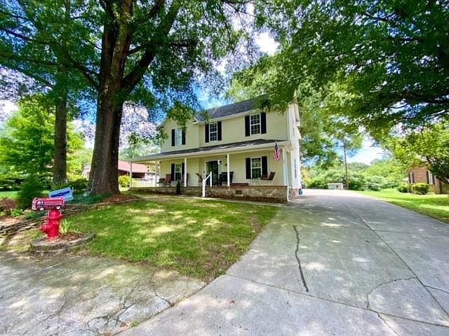 Walk to everything!! Beautiful farmhouse style property with a rocking chair front porch, wrap around decking and has been modernized. Just enough trees to provide shade and a detached double garage is a plus! Inside you will find the rooms are spacious and bright. Living room with gas log fireplace, dining room that flows onto the kitchen. Love to cook? This kitchen has it all, capacious amount of wood cabinets with lights inside and underneath. Built in cabinetry around fridge, unique island. Master bedroom on main level with sitting area and ensuite bath with jacuzzi tub, his hers sinks, WIC and separate shower. There are 3 more bedrooms upstairs with a bathroom as well. Office area on 2nd level or could be used as another bedroom.