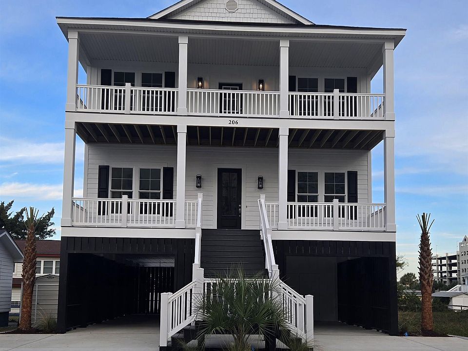 New construction -5BR oceanview home with heated pool, spa, elevator, game room and many custom touches in the heart of NMB. Home to feature: Main floor - open kitchen with custom white cabinets, quartz countertops, LG appliance package, dining and huge living room, 2 bedrooms with private baths, laundry, powder room, covered front and rear porches - Top floor has 3 bedrooms with private baths, 2nd family room, 10x33 multipurpose room that could serve as 6th BR, and large front covered porch - Ground floor - golf cart garage with storage, bathroom, elevator access, 18 x 30 saltwater pool with spillover spa and paver decking, privacy fencing, concrete driveway and lush tropical landscaping. All this and across the street from a beach access and only 4 blocks to restaurants, shopping, bars, arcades, concerts and all that Main Street has to offer. Home to be complete in December.