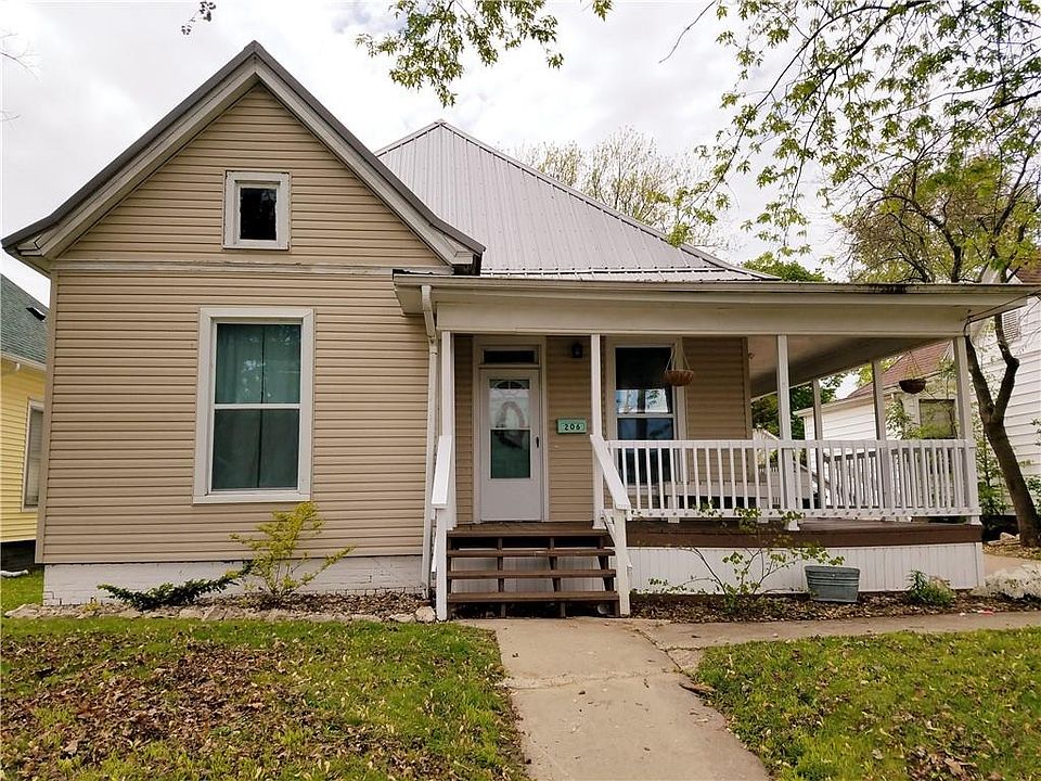 Your search is over! This darling home features old world charm with all the modern conveniences! A maintenance free exterior with vinyl siding, replacement windows and metal roof will allow you time to relax on the covered back deck and kick your feet up! The wrap around porch has plenty of room for outdoor living or a porch swing! Inside, you'll find original high ceilings and trim, three bedrooms, a large living room, dining room and updated kitchen and bath. The laundry is located on the main level and an unfinished basement offers loads of extra storage! This one is truly move-in ready and affordable!