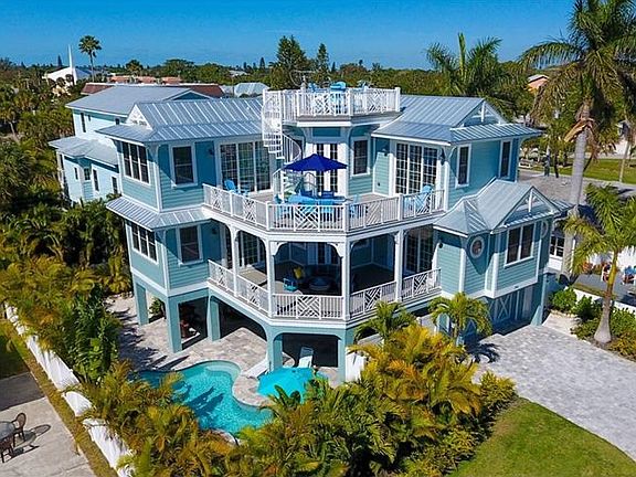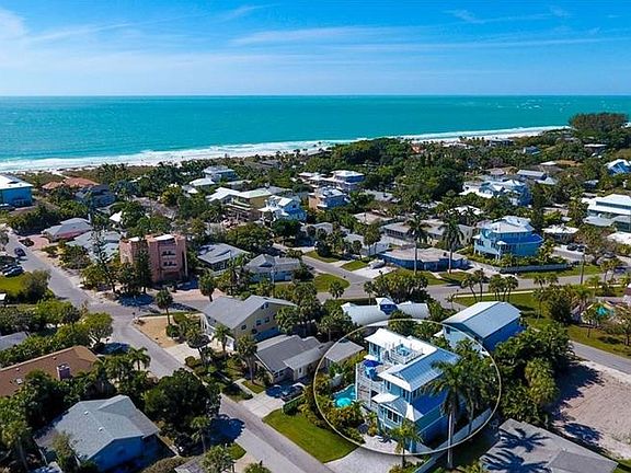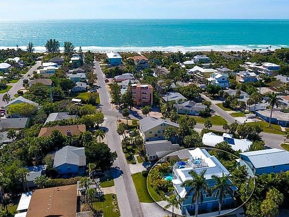 This beautiful 5 bedroom/4.5 bath newly constructed pool home is a stone's throw to the beach and has room for everyone! Built by renowned island builder, Kevin Hutchison, this energy efficient, low maintenance home comes fully furnished & ready to move in. Relaxation beckons from every corner, starting in your heated pool and spa with wall mounted remote, to the gorgeous peaks of the Gulf from your rooftop deck. High ceilings and large PGT impact windows & doors invite the sunlight in. The gorgeous finishes, from granite counters to wood tile floors, 50 yr warranted metal roof & high end appliances, make for easy care and coastal beauty. The large, maintenance free, composite decking on each floor help you embrace the island lifestyle. With en suite bathrooms and an elevator, and a second television lounge with wine cooler, this home is perfect for sharing with friends and family of all ages. A great investment, with superb rental potential, or a fantastic island home with a unique and open floor plan. Make this beautiful island home yours today!