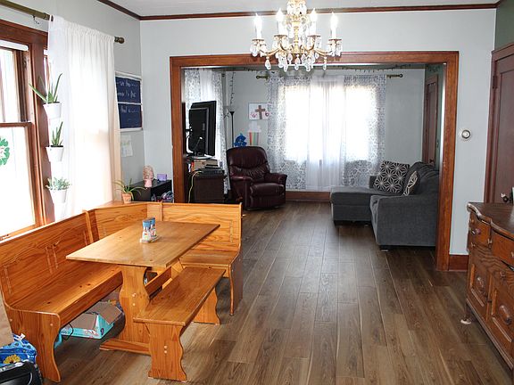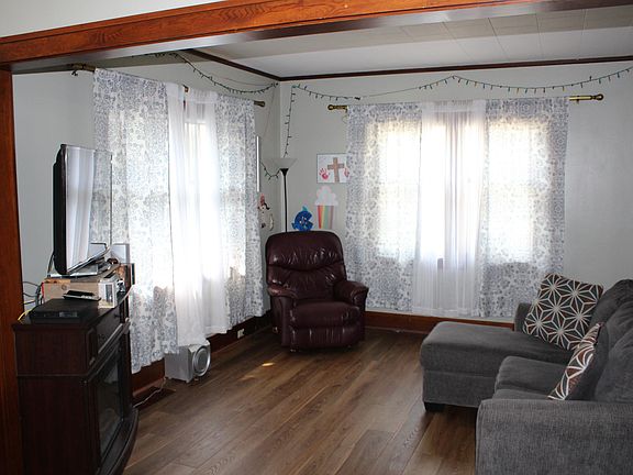 Cute ranch style home with traditional wood work, steel siding, finished basement, backyard space and nice two stall garage with ally access.