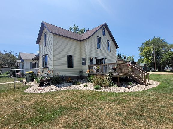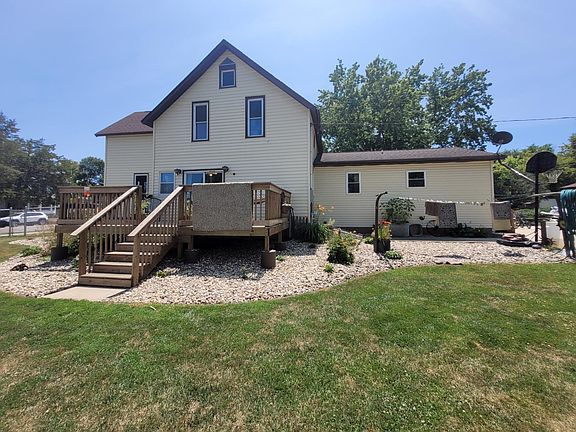 Great family home! 1.5 story home located on corner lot is beautifully landscaped plus it's complete with newer deck, large concrete patio, double & single detached garages, storage shed, garden, & extra parking area. Double detached garage is insulated, heated, plus new cement floor with drain. This lovely home features main floor eat in kitchen with oak cabinets, attractive backsplash, dining bar & pantry. Formal dining area has built in cabinets & patio doors to deck. Comfortable living room with bay window. An addition was completed in 2006 which added a full bath with double sinks, laundry, and office/mudroom area. PLUS large primary bedroom with walk in closet. Upper level has 3 bedrooms all carpeted with ceiling fans, plus a bonus playroom area. Basement is unfinished with crawl space. Furnace & central air new 2015.