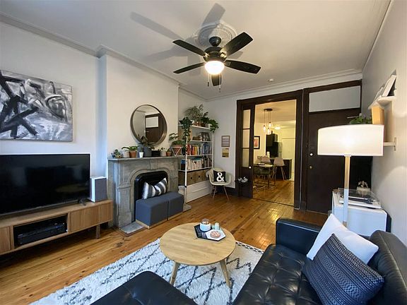 Very Charming and spacious 1 bedroom plus formal dining room on a pretty tree-lined street in the Historic Hamilton Park Neighborhood of Downtown Jersey City. Recently renovated with stainless steel appliances, espresso wood cabinetry and marble counter tops with breakfast bar. Many original details include a sliding pocket door, marble mantelpiece, high ceilings with moldings and medallions and refinished hardwood floors. Steps to Hamilton Park and local pubs, eateries and shopping. Walk 10 minutes to the Grove St Path/nightlife or to the Newport Path/mall/Waterfront/dining, etc. Shared backyard and free laundry in basement.