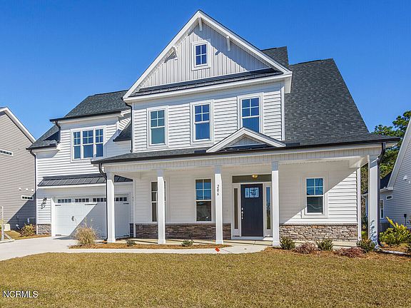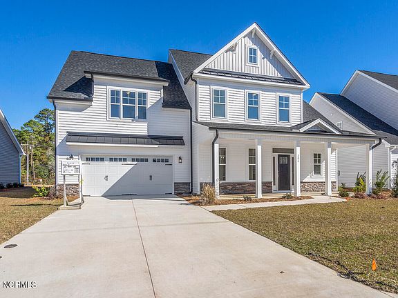 Welcome to The Sanctuary at Forest Sound, one of Hampstead's newest and fastest growing communities! Move-in today to the Topsail, from Hardison Building! This well designed, open concept, two-story home has over 2800 sq. ft. of living space and offers four bedrooms and three-and one-half baths. This home has a bright and spacious living area featuring coffered ceilings and cozy natural gas fireplace. With a seamless flow from the kitchen, breakfast area, large, covered porch and large flat backyard, this home provides the perfect layout for entertaining. This kitchen will wow you with the large center island, quartz countertops, tile backsplash, stainless steel appliances, including natural gas stove and pantry! The first floor is complimented by a formal dining area with trey ceilings, drop zone area off the 2-car garage, mud room with desk area and ½ bathroom. Upstairs there is plenty of room for all! The primary suite features a trey ceiling, huge walk-in closet, and a spacious bathroom with fully tiled walk-in shower, water closet, linen closet and a double vanity with quartz countertops. 3 guest bedrooms, 2 additional bathrooms, and a laundry room complete the 2nd floor. Two of the bedrooms have walk-in closets and a jack and jill feature with each bedroom having their personal vanity area, while sharing the shower area. The 4th bedroom features a suited bath. Additional features include laminate flooring throughout 1st floor living area, wood stair treads, natural gas hot water heater, quartz countertops in all bathrooms and sodded and irrigated yard. The Sanctuary at Forest Sound is a centrally located in the heart of Hampstead. 15 minutes to Wilmington or Surf City/Topsail and just 1 mile off the Intracoastal Waterway. Future community amenity includes a boat and rv storage area. All options and completion dates are subject to change. See agent for details on selected finishes.