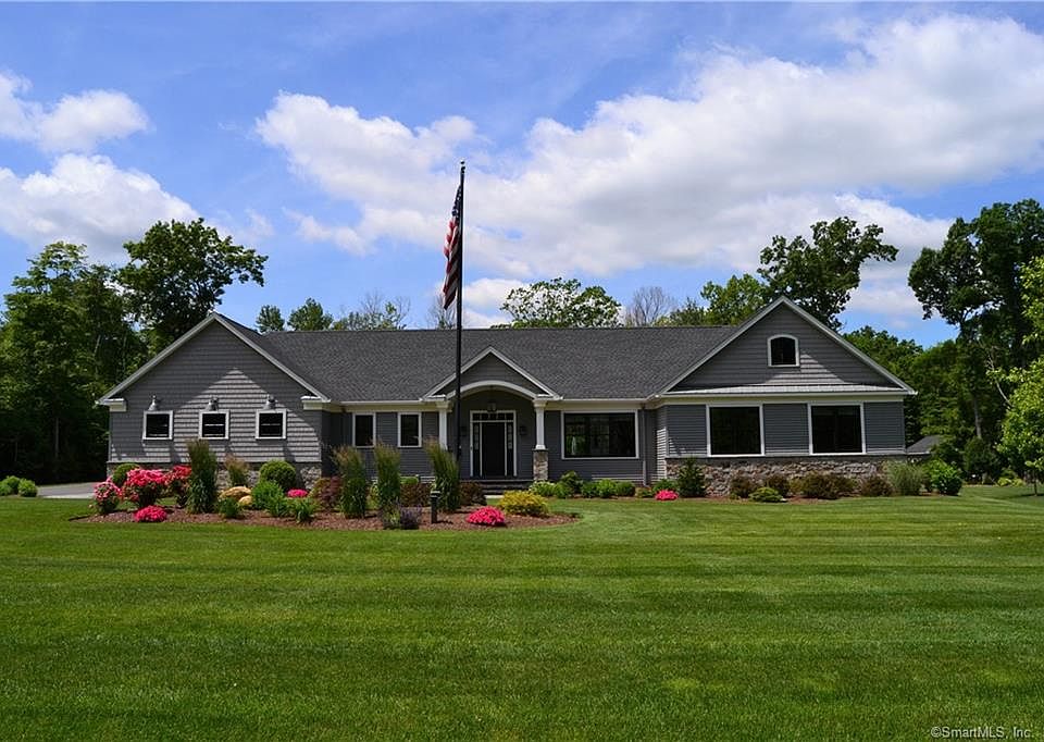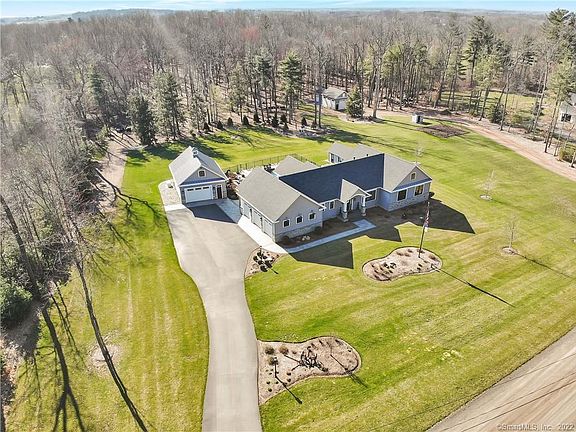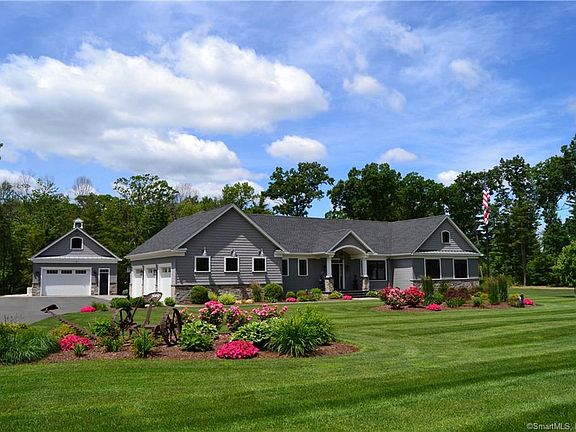 Stunning 2018 custom built ranch situated on tranquil landscaped grounds. This turn-key dream home boasts perfection in every detail, from superior quality construction to luxurious finishes and a long list of amenities. Casual elegance describes the open concept floor plan with 9' ceilings, exquisite crown mouldings and solid quarter sawn oak flooring with efficient radiant heat. The sun-lit living room features exceptional Boston style custom designed built-in hutches, gas lava rock fireplace with adjoining dining room. Gourmet kitchen has the finest cabinetry, high end appliances, oversized walk-in pantry. All the bells and whistles one could imagine! The spacious primary bedroom has an impressive ensuite bathroom, gas fireplace and pair of incredible walk-in closets. Outside is a spectacular outdoor patio ready for entertainment or relaxation. Award winning heated salt water pool, water features, covered seating area with overhead fan and retractable shades and stereo speakers, complete outdoor kitchen with bar & gas fire pit accented by professional lighting. The home has a 3 1/2 bay attached garage, a two story detached garage and pool shed. Lawn irrigation & sprinklers. Generac backup generator, security system. Definitely one level living at its finest in the scenic town of Ellington! Additional 8.37 acre lot, 204 Abbott Rd, to be included in sale.