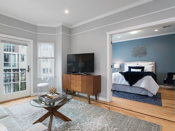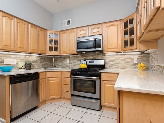 Prepare to fall in love with this downtown delight. This extra spacious updated 3 Bedroom, 2 Bathroom condo is loaded with natural light. Newly re-finished beautiful inlay Hardwood Floors throughout accent the neutral decor and colors of this space. Updated Kitchen boasts light oak cabinets, quartz counter tops, custom tiled backsplash, Stainless Steel appliances, pantry & breakfast bar! Enjoy your open concept Dining/Living Room which features a beautiful bay window and Juliet balcony. Retreat to your Master Bedroom located in the rear and enjoy your brand new en-suite Spa-inspired bathroom which features double sinks and marble countertops. Soak in evening sunsets on your balcony with access from both the Master Bedroom and Second Bedroom. Gorgeous Third Bedroom off living room has French doors & large closet. Other features include in-unit washer & dryer, Central A/C, large private storage cage and common backyard. Convenient to PATH, Bus, & Train as well as restaurants and shopping on both 1st and Washington Streets. Nothing to do but move right in and start "living the dream" in your new home!