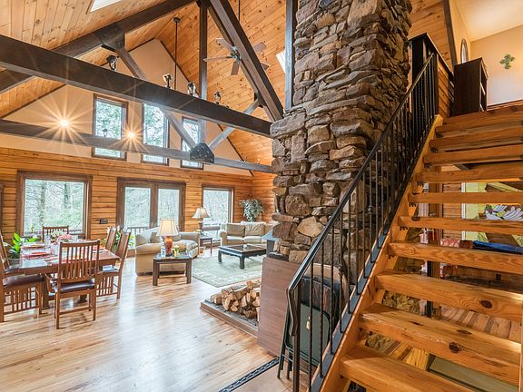 Enjoy the privacy of this one-of-a-king custom built log home located less than 1 mile from the Blue Ridge Parkway, 10 minutes from Blowing Rock and 15 minutes from Grandfather Mountains hiking trails. The main house features 4BR/4.5BA (with 5th "bonus" room) and 4300sqft on almost 3 acres in a park like setting with a creek. Main house offers a great layout with vaulted ceilings and stone fireplace in the living room, main floor master suite, open kitchen with stainless steel appliances and granite counter tops, 3 bedrooms upstairs all with their own bath, and "bonus" room with separate fireplace on the lower level with access to the 2-car garage. The second house features a detached 2-car garage/workshop with 1BR/1BA apartment above. This property offers many custom upgrades including tons of interior and exterior stone work, central heat/ac along with radiant floor heat in several rooms, firewood elevator, tankless water heaters, mature exotic landscaping, great privacy and much more at a great price.