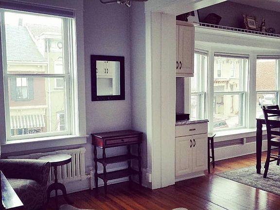 Welcome to The Historical Sunstone Mansion located in the Heart of Historic Downtown Hollidaysburg, Pennsylvania. Walk to all the Café’s, Pubs, Shops, Galleries, Festivities and more! Enjoy the Views from your Stunning Second and Third Floor Apartment! Furnished 2 bedroom (2 queen sized beds), Vanity Room/Office, 1 Full bath, Living Room, Kitchen and Dining room. 10 foot Ceilings, Courtyard, lots of closet space. $1,500.00/mon includes 2 Garage Parking spaces, water/sewer, heat, trash removal, landscaping, snow removal, air conditioners. Washer/Dryer and Stainless steel kitchen appliances. Electric not included. No Pets Allowed. Non smoking building. $35.00 non refundable application fee. $1,500.00 Security Deposit.