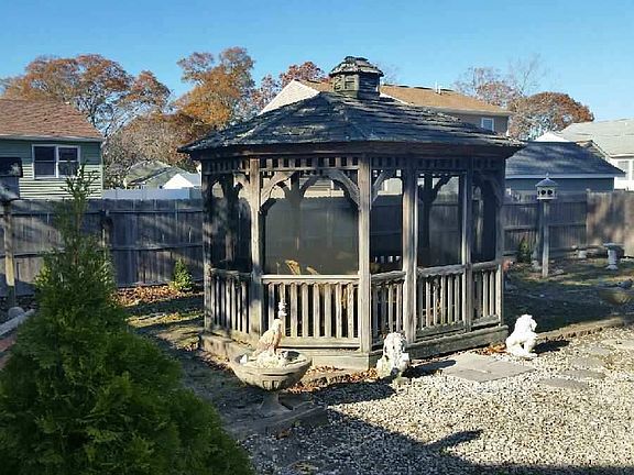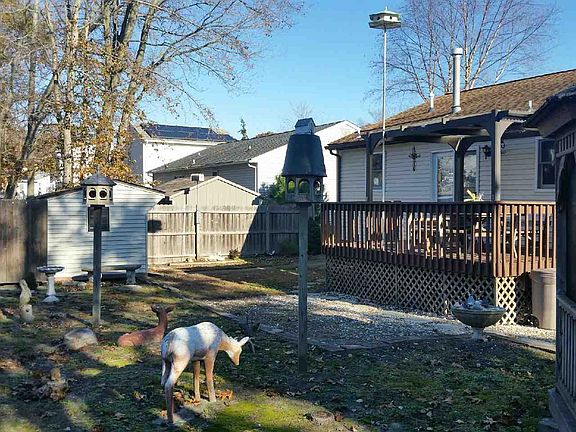 This single family home features three bedrooms and two baths with an attached garage. The kitchen has an eat-in-kitchen area. French doors lead to a rear deck and backyard containing a screened in gazebo and storage shed. The laundry room, located directly off the kitchen, allows access to the one car garage. The living room offers a vaulted ceiling and is located next to the kitchen. The master bedroom has its own bathroom. Two additional bedrooms, and a full sized bathroom with linen closet, are located along the hallway. Each bedroom and the hallway contain double closets