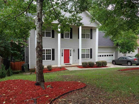 This Antebellum style home features beautiful columns on the expansive front porch. Nestled up to private woods in the back of home. Living room features wood burning fireplace, ceiling fan and french doors open up to a two level deck. Backyard has newly installed wood privacy fence. Eat-in kitchen has been upgraded with gorgeous granite counter tops. Refrigerator remains with home. Formal dining room has hardwood floors. Master bedroom has trey ceilings and a large private bath with double vanity, separate tub and shower and walk-on closet. The room above the garage is perfect for a man cave or a 5th bedroom. Blue ribbon Lex/Rich schools, close to I-26, Columbiana Mall, Palmetto Health Hospital. This freshly painted home comes with 2-10 home one year warranty. Welcome Home!