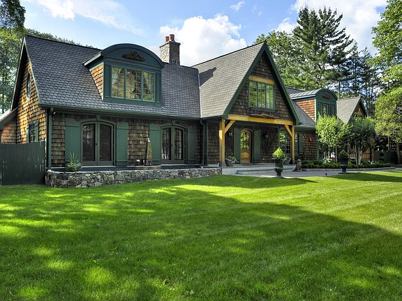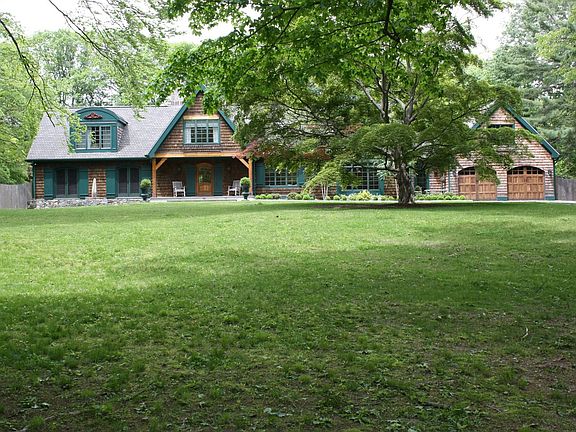 Style and Substance combine with spectacular detailing to make this commanding Shingled Colonial the perfect home. An artful combination of architectural beauty and casual elegance, this impressive homes focal point is the spacious chefs kitchen that beautifully flows into a fabulous great room with fireplace. There is a sumptuous main floor master bedroom suite with luxurious marble bath. Three additional generously sized bedrooms, all en-suite are on the upper level. An abundance of windows provide for sun-filled rooms and showcase the custom woodwork, moldings and wainscoting. The property provides plenty of room for entertaining and relaxation including the outdoor patio overlooking 1.57 level landscaped acres surrounded by mature trees. Conveniently located just steps to shopping, schools and Chappaqua train station.
