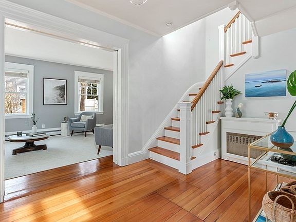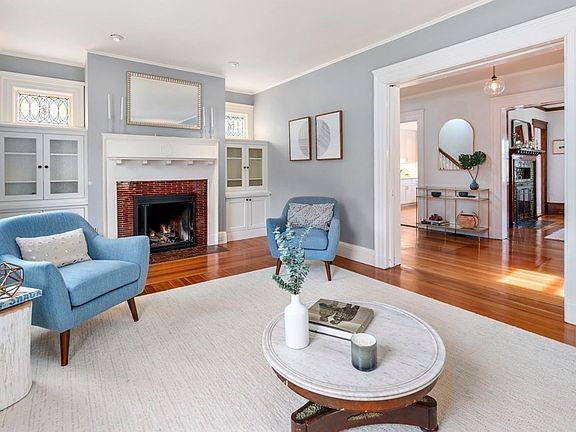 Ideally located on an oversized corner lot in coveted West Roxbury Parkway neighborhood, this handsomely updated, sun-filled Classic Colonial evokes historic charm. Four floors of living with well-proportioned rooms & generous entertaining spaces afford privacy & flexibility. Elegant entry hall opens to a spacious living room with cozy gas fireplace, stained glass windows, & custom cabinetry. Separate dining room bathed in natural light with stunning original tile fireplace. Gather in the spacious kitchen with built-in breakfast nook. Gorgeous hardwood floors throughout, Central AC on 1st floor. Second floor features 4 sunny bedrooms & beautifully updated full bath. Third floor offers bonus guestroom or office. Lower-level features surround sound media room and home gym enjoyment. Imagine summer evenings in the private, beautifully landscaped, irrigated backyard with patio framed by fieldstone walls. Convenient to Longwood Medical Area. Easy access to commuter rail, shops and dining.