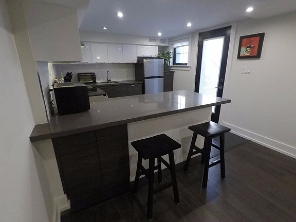 OUR PREFERENCE IS A 1 YEAR LEASE STARTING JULY 1 (no earlier) OR A SHORT-TERM 2-MONTH RENTAL FOR JULY AND AUGUST @ $1,800+/MONTH. Newly Renovated Fully Furnished Basement Studio in Little Italy with large kitchen Stunning basement unit - modern and elegant design and a place you would call HOME. Available as of July 1, 2022. Minimum 1-year lease required (or 2-month short-term @ $1,800+/month) This beautiful basement bachelor has/is: - 1 twin bed (therefore only suitable for 1 person) - Newly renovated and fully furnished (including fully equipped kitchen) - Regular housecleaning of entire unit included in rent - Unlimited internet included in rent - Private separate entrance - Air Conditioned - Open concept gourmet kitchen with quartz counter-tops - lots of natural light - Minutes to Dundas and College TTC buses - $1,550/month + utilities (or $1,800/month + utilities for a short-term 2 month rental) - hydro, gas and water/sewage not included in rent (average of roughly $60/month) - street permit parking available at additional cost if required Super Convenient location! - Great trendy and hip Little Italy and Little Portugal location - Close to lots of restaurants, cafes, games places, Metro, 24/7 7-Eleven, and shopping - Also walking distance to Trinity Bellwoods Park, Chinatown and Kensington Market - Easy to get to U of T, Ryerson, Entertainment District or Financial District Applicants must provide credit score report, employment letter/pay stub or guarantor and references. Call +7 OUR PREFERENCE IS A 1 YEAR LEASE STARTING JULY 1 (no earlier) OR A SHORT-TERM 2-MONTH RENTAL FOR JULY AND AUGUST @ $1,800+/MONTH. - hydro, gas and water/sewage not included in rent (average of roughly $60/month) - Unlimited internet included in rent - Regular housecleaning of entire unit included in rent