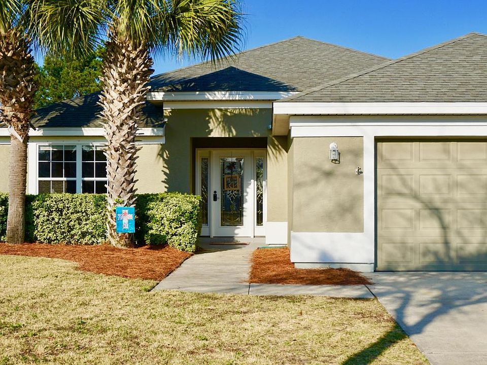 Beautiful home located on a large corner lot in the much desirable Palmetto Trace. A block from pier park and minutes from the beach. Arched entry way with columns that lead into a large open floor plan. Great room boast 16ft ceiling, separate dining area and spacious kitchen with large breakfast bar seating 7 people. Arched hallway leads to master bedroom. Two additional bedrooms along with a bonus/office with french glass doors. Screened porch 27.6x10 leads into private fenced back yard. Two community pools within walking distance. Front and back yard has been resodded with zoysia grass. Interior & exterior painted in 2016, and new Ac was installed in 2015. Please allow at least three hours in advance for showing.
