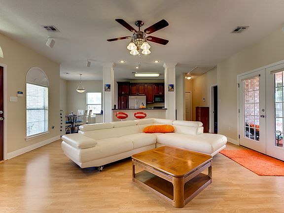 Large open space living room Brand new kitchen cabinets and granite counter top Build in water filter for drinking water New stainless steel appliances 9 ft ceiling Wired for surround sound Big patio and back yard with fruit trees