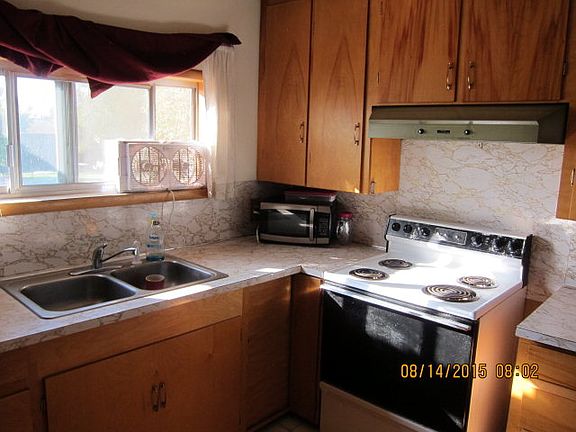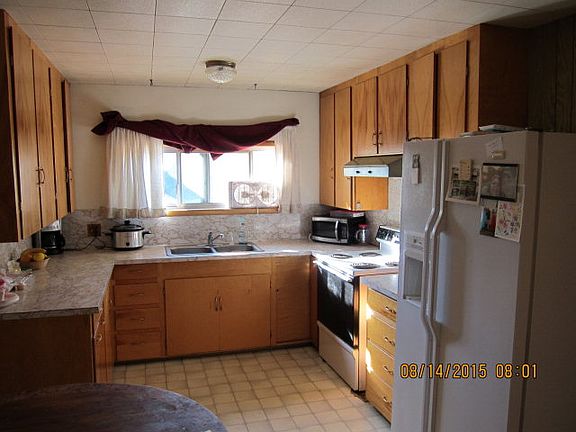 Affordable city home with large living room, two bedrooms and one bathroom. Large eat-in kitchen with ample cabinet space and pantry. Nice size enclosed entry/mud room. Unfinished basement with washer/dryer hookups, loads of storage and new water heater. Detached single car garage with opener. Front yard is fully enclosed with chain link fence for Fido. Apple and apricot trees. New water heater and newer, maintenance-free metal roof. Covered outside storage area for firewood and lawn tools. Priced right.