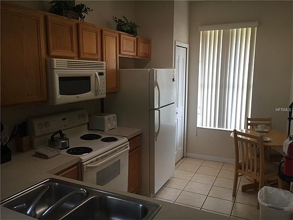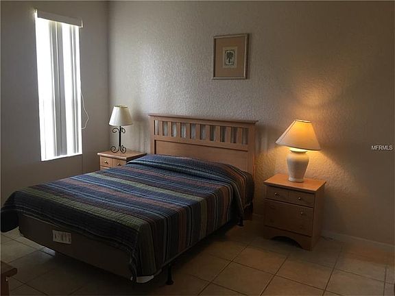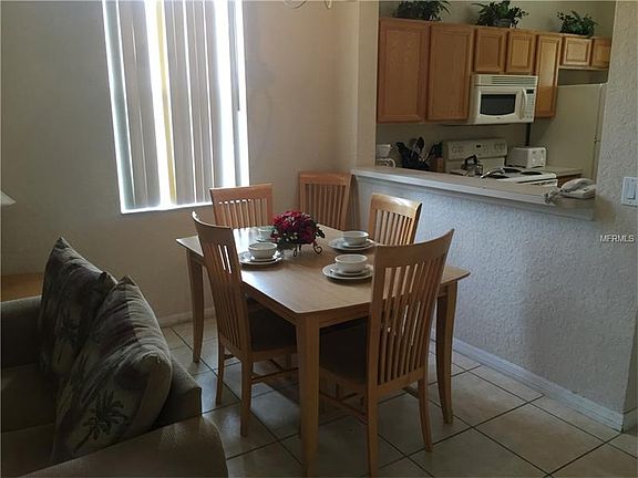Corner or end unit and close to the clubhouse. Fully furnish, living room is tiled and this property is not backing up to another town house. NO $10K initiation fee, Regal Palms is an exclusive private, gated Resort community located just 15 minutes from Disney World's Main Gate. The complex consists of 600 town house style homes in a lovely Tuscan Villa style setting with several amenities. You will be delighted with our 2 1/2 acre tropical swimming pool and lazy river oasis, complete with heated pools, water slide with waterfalls, outdoor & indoor Jacuzzis. Sun bathing terraces, a playground and a volleyball court with a pool side "tiki" bar. The fitness center has a therapeutic Jacuzzi, steam room and sauna along with elliptical equipment. The spa allows you to pamper yourself with massage, manicures and pedicures, etc. Inside you can enjoy dining at our restaurant and bar, surf the internet on your laptop using free Wi-Fi, or utilize our business center. We offer live entertainment (seasonal), event celebrations on holidays and even a market place for the must have items! The Guest Services is open 24 hours. Onsite is Banana Jacks, a 4000+ sq. ft. family style environment with games, food & fun for all ages. Regal Palms is the most highly sought Resort Community in the Davenport area for short term rental