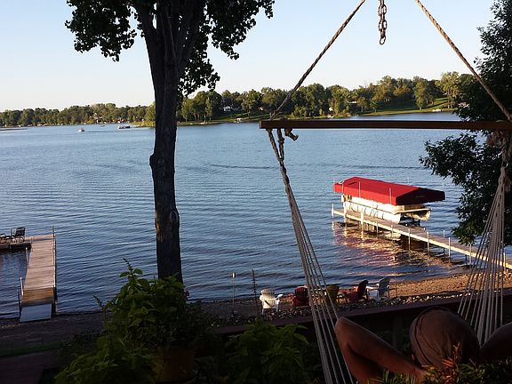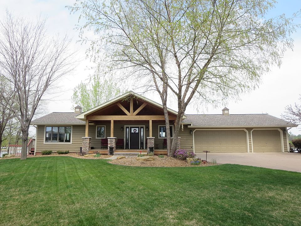 Beautiful North Center Lake home on private island with 11 other custom homes. 3 bedroom & 2 bath, 2520 finished sf, full walkout, tons of storage. Amazing panoramic lake views, 130' private lakeshore. Lake is connected to South Center Lake for 1600 total acres of recreational boating & fishing. Many upgrades in the last 1-4 years: 20x10 front porch addition, roof, many new appliances, flooring, bathroom, etc.