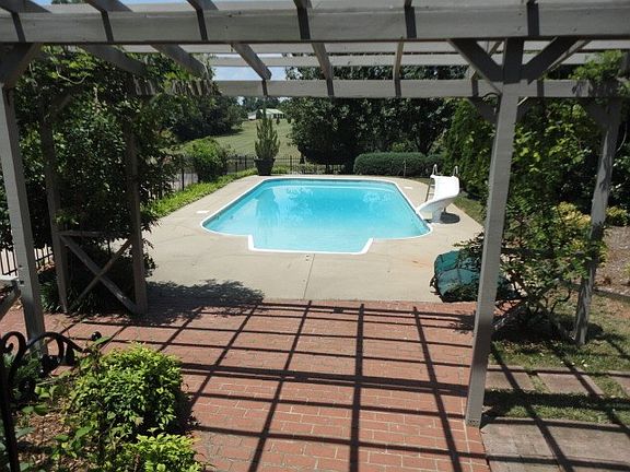 Wonderfully charming home on large double lot with beautiful mature landscaping and trees maximizing privacy! Current owners bought property in 2001 and have made many upgrades and improvements throughout the years. Home fronts Callahan Street, but concrete driveway with circular turnaround is off of Edwards Street - across from Rutherfordton Municipal Golf Course. Heated in-ground pool with slide is fenced. Patio with newer Pergola overlooks pool. Storage shed to store pool supplies is painted to match house. House was painted in 2012 with liquid vinyl siding and has warranty. Front porch wraps around with stairs to patio. Interior features include wood floors throughout, living room with gas log fireplace, large formal dining room, modern eat-in kitchen, laundry/back entry with built-in cabinets and pantry, all 3 bedrooms have built-ins, remodeled bathroom, center hall, pull down stairs to attic storage. 1-car attached carport. Small cellar area off carport. Trane heat pump just serviced in April. This is a wonderful home and lot that is well worth seeing.