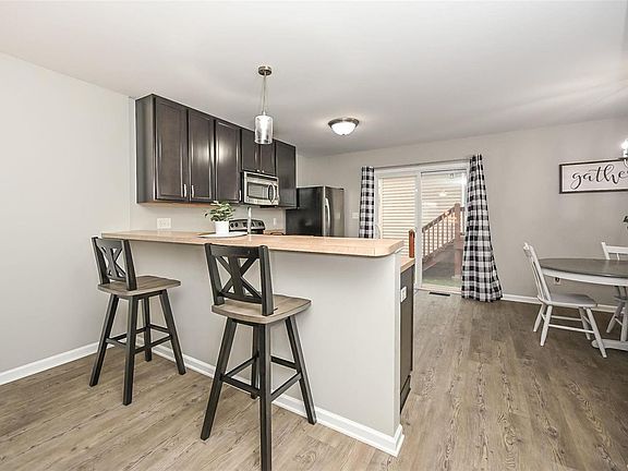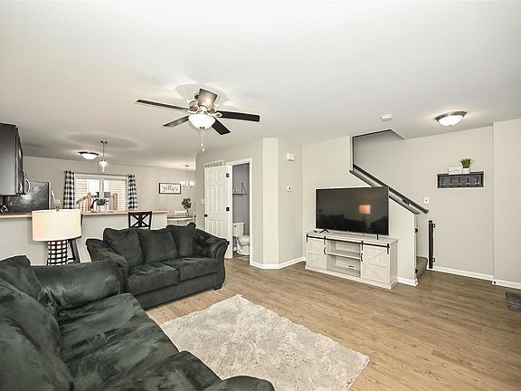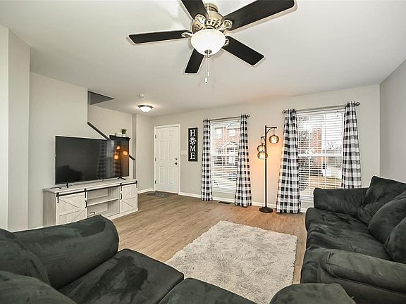 Looking for space and carefree living, this is one you will not want to miss. This adorable townhome is located just minutes from Interstate 70 and 367. It has a spacious living area. Stunning kitchen and Breakfast/dining area with a half bath on the main level. The kitchen boasts of mocha 42” wall cabinets, extended counter space with breakfast bar, pantry and stainless-steel appliances. The homeowner has improved the living space by updating the main and upper level of the home with wood laminate flooring. The upstairs gives you two large bedrooms with spacious walk-in closets with organized shelving. The upper bathroom is extremely spacious with tons of counter space and makeup table. The lower level offers a rough in for your creative finishing of a full bath. Sellers are including in the sale of the home the front load Washer/dryer set and the kitchen refrigerator. all in good working order as-is. You will love the additional space the 2-car garage offers. Location: End Unit