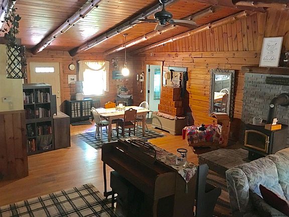 This log-sided country home will make you feel like you're always on vacation! Privately located with over 10 acres this 3 bedroom, 2 full bath home has a great room with a vaulted ceiling with wood beams and a cozy wood stove. Located on Caroga Creek with woods and trails to enjoy. Johnstown School District for 9-12 grades. Attached 2 car garage, deck, side porch, RV hookup, 1 floor-living, pellet stove, large basement and more! Make a combine offer with the owner's 8.4 acre lot to enjoy 19+/- acres, refer to 201929011. No showings until 02/01/20.