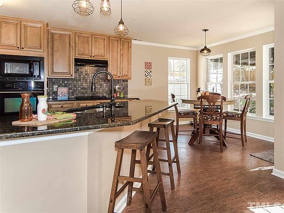 Your new home in a cul-de-sac awaits you in beautiful Apex! Elegantly dressed with laminate wood floors throughout, the flow of the home is cozy and comfortable. The kitchen features GRANITE counters and UPDATED LIGHTING. The breakfast nook leads to the back patio covered by a pergola, which is perfectly situated for entertaining and grilling. The master bedroom has a VAULTED ceiling and a HUGE walk in closet. The BONUS room could also be a 4th bedroom for overnight guests. Community features 2 pools, a playground and easy access to shopping and dining.