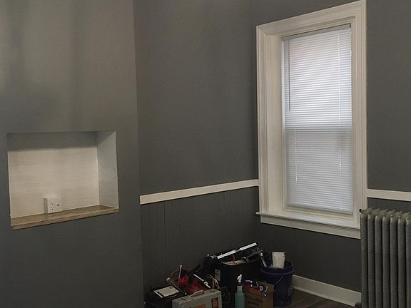 Beautiful 1 bedroom apartment with no shortage of nice features. Cherry cabinets with granite counters. New flooring throughout. Tv mount already installed over fireplace and wired for cable and internet in living room. The bedroom has a tv shelf wired for cable in an old unused fireplace. The bathroom has a nice vanity with storage. The apartment has one off street parking spot in a secure garage. All appliances are included as well as onsite laundry. With 10' ceilings and a few interesting old windows the entire place is loaded with charm. The pictures don't do it justice. This is smoke free and pet free. Landlord pays all utilities except phone/cable/internet. Garage parking is for one vehicle