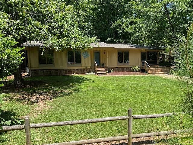 Looking for a home with a yard in town? Here's a 3b/2b brick ranch on a quiet street and a private wooded back yard. Enjoy summer evenings on the large screened-in porch or cookout on the back patio that overlooks a swing, treehouse, chicken house and storage shed. On winter's nights you can curl up by the wood burning fireplace in the den or entertain in the sunny, open floor plan of the kitchen/living/dining room around the large granite-topped bar/island. Wood floors throughout. Freshly repainted throughout. Large kitchen with tiled floors, beautiful cabinets, and a pantry for storage. Lots of windows bring the outside in, and they crank open so you can let in the fresh air too! Close to downtown Carrboro, the Farmer's Market, the ArtsCenter and so much more. There's no better place to call home! (And no HOA, so no extra monthly fees).