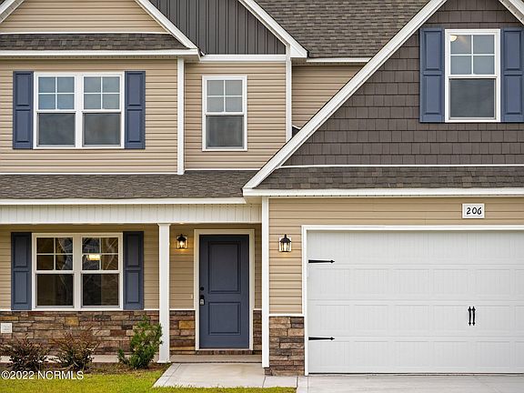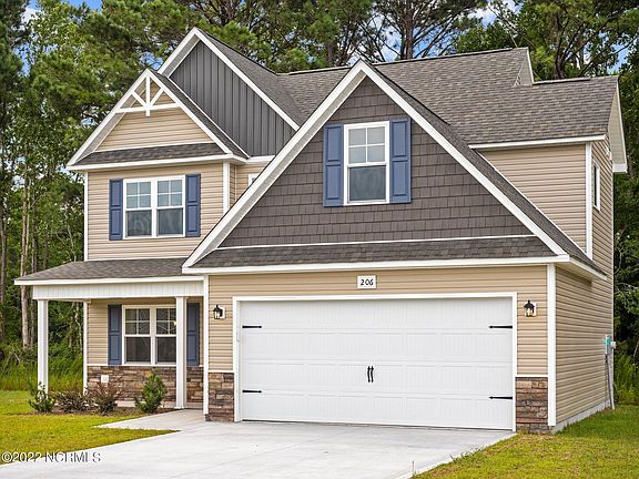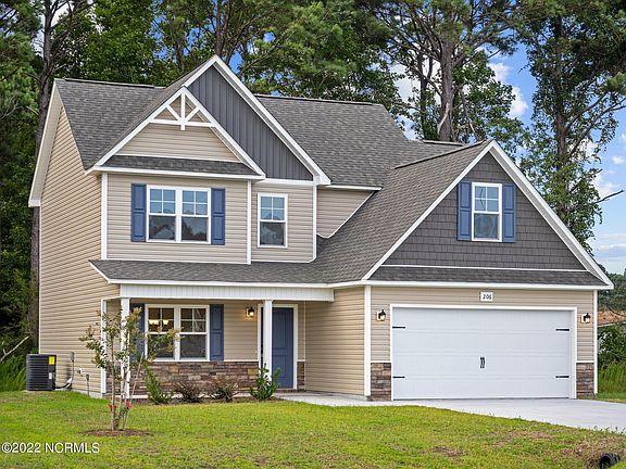 This like new-construction home features a sizable front porch and a pleasant foyer. The spacious dining room and large great room provide lots of room for entertainment. This kitchen has a large island, plenty of storage, and counter space. A huge master bedroom and master bathroom with a stand-up shower, separate tub, and a private toilet are located upstairs. The laundry is conveniently located upstairs, has a bonus room, and has additional closets and storage space. Within a short drive from Wilmington, Hampstead, Sneads Ferry, Jacksonville.