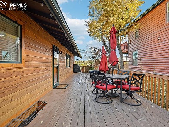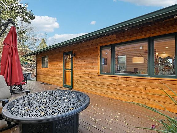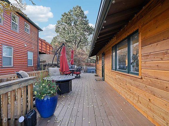 Welcome to this gorgeous, recently updated Manitou Springs home! This home is close to restaurants, downtown Manitou Springs, hiking trails and schools! as you pull up to this amazing home, you'll notice the large wrap around deck and the beautiful wood siding giving it true mountain home feel. The wrap around deck has plenty of sitting areas to enjoy the views! This deck also brings you around to the fenced backyard equipped with a hot tub, storage shed and newly laid pet friendly turf. As you enter the home through the front door you are met with natural wood flooring and an abundance of natural light coming through the windows and doors. The living room, dining room and kitchen are all open concept with a nice walk out from the dining area to the wrap around deck. The kitchen has a gas stove, custom cabinetry, wine fridge, quartzite countertops and a breakfast bar, to name a few of the gourmet upgrades! Down the main level hallway is the primary bedroom, bedroom 2, laundry and a full bathroom. Near the full bathroom at the end of the hall has yet another walk out to the wrap around deck and backyard! The lower level boasts a bedroom with a sitting area, an office, a family room with gas burning fireplace, a storage closet that has a washer/dryer plug in and a 3/4 bathroom. The lower level also has its own access from the front of the home. Come check out this amazing, one of a kind Manitou home today!