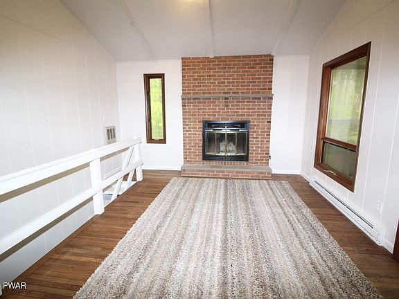 - Description: Open to kitchen, Brick fireplace, wood floor