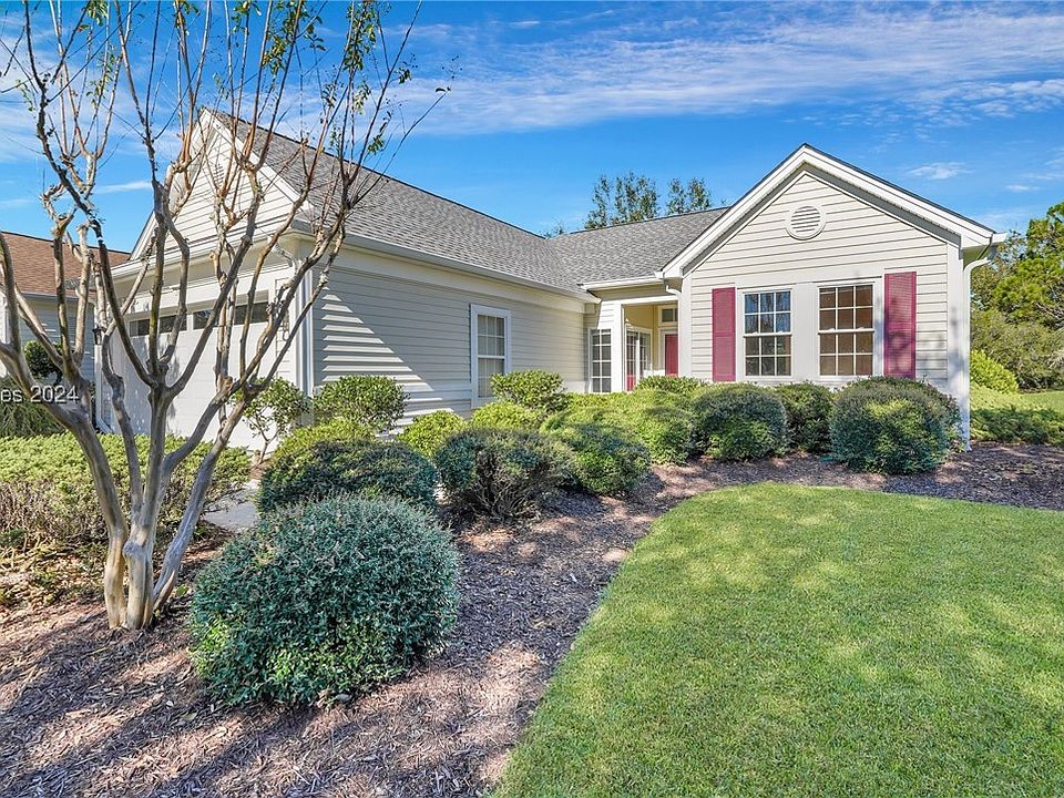 Move-in ready & UPDATED! This charming 2BD/2BA Jamestown Savannah model in Sun City Hilton Head offers comfort and convenience. The home features an extended office/flex room with french doors off the primary bedroom with serene backyard views. Enjoy an eat-in kitchen with stainless steel appliances, newer cabinets, and counters, opening to a bright dining and living area with new flooring. Relax on the four-season enclosed porch or exterior patio. A new roof, recently painted interior, low-maintenance siding, and Beaufort County taxes make this a Southern Charmer! Sun City has over 150 clubs as well as tennis, gyms, pools, pickleball & more!