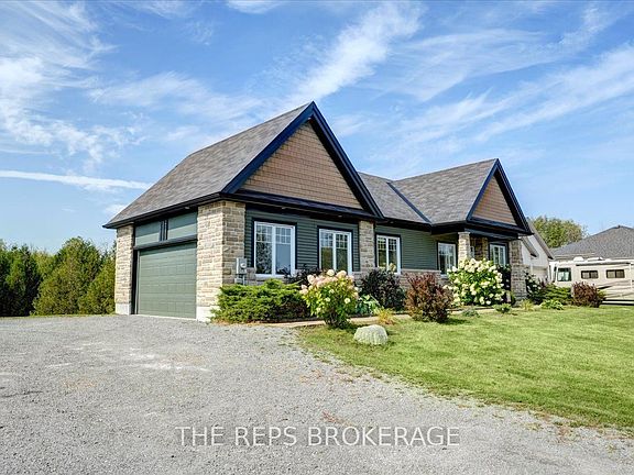 Welcome to 206 Country Lane, a true showpiece bungalow where luxury living meets country charm. Built in 2011 and meticulously maintained, this home sits on a 1.5-acre landscaped lot with a private double driveway, manicured front gardens, and a large rear yard that enhances the full walk-out basement design. Open, Airy, and Elegant From the moment you step inside, you'll be greeted by a large floor-to-ceiling stone fireplace rising into the impressive vaulted ceilings. Every detail has been thoughtfully crafted: 9-foot ceilings on main level, expansive windows with custom coverings, pot lights on dimmers, and gleaming white oak hardwood floors. The gourmet kitchen features a large island, granite countertops, and seamless sightlines to the great room, eating area, and formal dining space. Step out to the elevated deck and enjoy serene views of your private yard perfect for entertaining or quiet evenings at home. The primary suite is a retreat unto itself, with a spa-inspired ensuite boasting granite finishes, a jet tub, and a stand-up shower. Walk-Out Lower Level Bright & Spacious. The fully finished walk-out basement rivals the main level, offering bright, versatile living space with direct access to the backyard. With a separate bedroom and full bathroom this space is perfect for hosting guests or family on extended stays. Patio doors lead you to a hot-tub ready terrace, surrounded by trees, sprawling lawn, and complete privacy. With 1.5 acres, you'll enjoy the best of both worlds: the space and tranquility of country living while still being minutes from Carleton Place, Richmond, and Ottawa. The gently sloping lot adds functionality and beauty ideal for family gatherings, or simply unwinding in nature. Come see this gem today.
