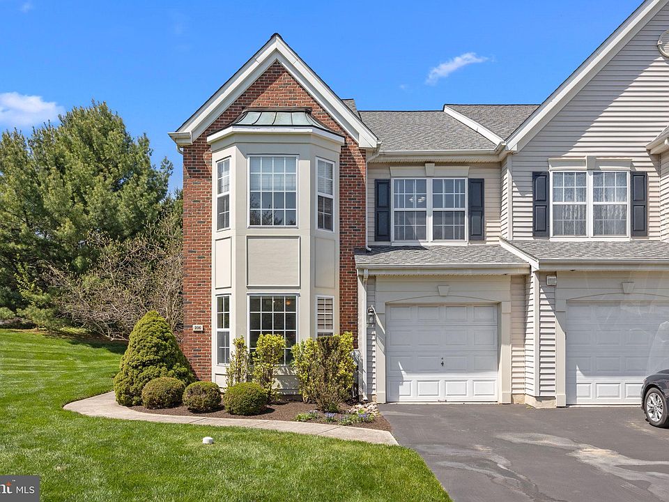 Location, Location, Location sets this immaculate upgraded 3 bedroom 2 ½ bathroom move-in ready townhome with generous storage in Warwick's sought after Country Crossing community far apart from the rest. Welcoming, charming & updated throughout, this roomy 2 story end unit (cul-de-sac) townhome is sure not to last long. The open concept floor plan offers premium function while flooded with natural light. Step right through the front door into the main entryway with double hall closets, neutral colored walls and light pine hardwood flooring. Right off the foyer is the spacious living room (currently used as a home office) with plush neutral toned carpet, large sunny front bay windows and a lighted ceiling fan. Continue through the large formal dining room with accented recessed lighting and a large side bay window providing an abundance of natural light as well as a functional dining room closet. As you make your way through to the cathedral height sun soaked large two-story family room you'll notice a custom floor to ceiling stone gas fireplace for those cold winter nights. Two tiered specialty arched top windows flank the fireplace. Proceed through to the large upgraded eat-in kitchen with a large center island with door and sliding drawer storage, ceramic tile flooring, recessed lighting, upgraded white wood cabinets, beautifully tiled backsplash, granite countertops, decorator pendant lighting and GE Profile stainless steel appliances. The eat-in kitchen area also has double glass sliding doors that lead to the private rear EP Henry paver patio, great for entertaining and family get-togethers. The home is surrounded by private outdoor open living space enhanced by privacy trees and shrubs and set back from neighboring homes. An upgraded half bath, laundry room with utility & storage complete the first level. Garage with remote door opener provides direct access to home. Up the open rail turned staircase to the second level you will find the oversized primary bedroom with large his and hers closets, lighted ceiling fan, triple bay windows, a large en-suite bathroom with a double vanity sink, upgraded oversized custom stone & tile stall shower and a large soaking tub. Two other generously sized bedrooms fill this upper level, as well as a full hall bathroom with a vanity sink, tub/shower combo and a large linen closet. Ideally located in the award winning Central Bucks School District & minutes away from municipal parks, shopping, dining, entertainment and major roadways. Low HOA fee includes roof replacement, outdoor painting, lawn maintenance, landscaping, trash/recycle collection and common area maintenance. Don't pass up the opportunity to live in this highly desirable Warwick Township community! Schedule your showing today!