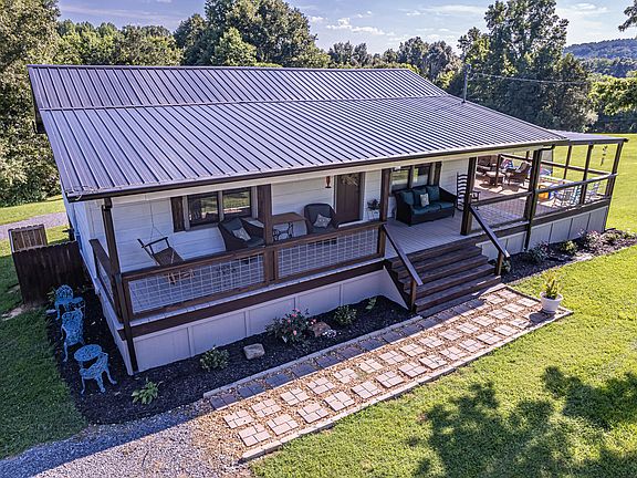 Completely updated home on acreage! Plenty of privacy and room to roam. Nestled in the county but less than 5 minutes to town. This home features 3 bedrooms and 2 bathrooms. On the main level there is new hardwood floors throughout, wood ceilings and beautiful wood beams. New cabinets, granite counter tops, and appliances in the kitchen. The upstairs bath features a tiled shower bath combo. The finished basement could be additional living quarters. The basement features 1 bedroom, 1 bathroom, living room, kitchen, oversized bonus room, and laundry room. New butcher block counter tops and tiled walk in shower. All new lighting throughout the home. All new exterior and interior doors. New metal roof on house installed last year. Outside you will find a newly built 16x 30 covered porch great for entertaining this connects to the front porch. There is a large garage outside with a double attached carport. New metal roof and siding just installed on the garage. 4.63 acres of cleared land with trees boarding the property with a creek at the front of the property. Plenty of room for livestock or room for playing in the yard. Agent owned.