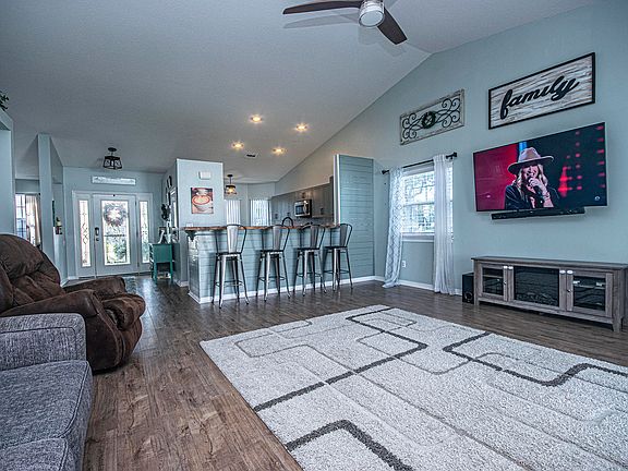 Fabulous Palmetto Trace 3 bedroom 2 bath home on a huge corner lot with updates and upgrades. This home features new luxury vinyl plank flooring, new carpet in bedrooms, new paint throughout, a kitchen update including water proof butcher block counter, & a new design feature opening up the kitchen to the great room from a previously enclosed wall. Kitchen updates include new brushed bronze bin pulls, hardware, sink faucets & lighting fixtures, a fabulous herringbone back-splash & quartz counter-tops. Home upgrades also include wifi temp controls, fenced in backyard & extender paver patio. Spacious Master bedroom offers his and her walk in closets and vanities. Additional features include formal dining area, laundry room, & covered patio. Home is also under a termite bond for peace of mind