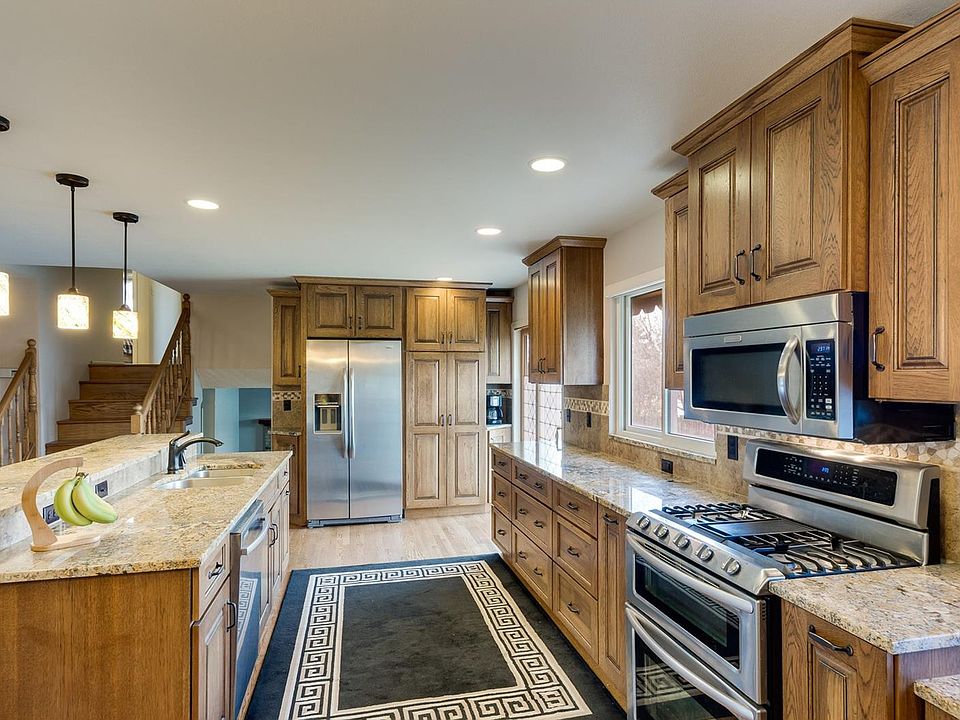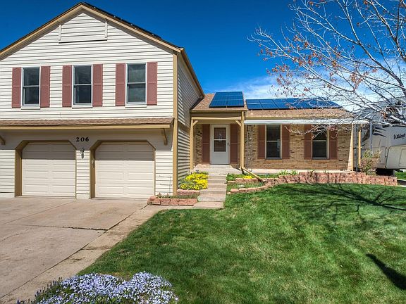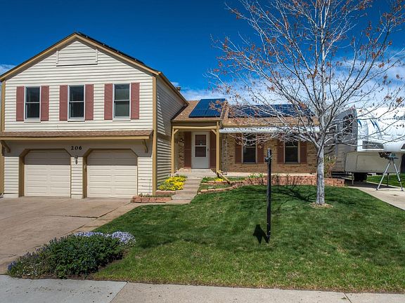 Amazing property in a desirable neighborhood in Golden! Located near the foothills of Apex Park and Lakota Hills, this home is near it all and has it all! From the moment you enter this home you are greeted by a beautiful, custom built in, solid wood seating bench. The kitchen counters are a beautiful upgraded granite and extend far into the dining area to allow maximum counter space. Along with the Hickory wood cabinets, upgraded fixtures and easy access pantry this kitchen would make any Chef proud. There is hardwood stairs from the main level to take you up to 3 bedrooms and two baths and lead you down to the lower level family room with a cozy pellet stove and half bath. The basement boasts a rec/bonus room, a laundry room and a non-conforming bedroom. The backyard has a patio with a retractable awning and greets a walking path/greenbelt for miles of exercise. Check out the side, concrete RV/parking space and efficient Solar Panels to top off this roomy family home! More to see!